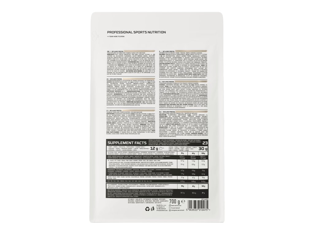 Syrovátkový protein se vyrábí ze syrovátky, která je vedlejším produktem při výrobě sýrů. Jedná se o živočišný zdroj bílkovin, který užívají fyzicky aktivní lidé bez ohledu na jejich tréninkový cíl, úroveň tréninku a zkušenosti. Existují tři typy syrovátkových proteinů - syrovátkový proteinový koncentrát (WPC), syrovátkový proteinový hydrolyzát (WPH) a syrovátkový proteinový izolát (WPI). 100% Whey Protein využívá syrovátkový proteinový koncentrát z mléka, který se vyznačuje dobrou rozpustností, vynikající vstřebatelností a krátkou dobou vstřebávání, což má pozitivní vliv na kvalitu suplementace.